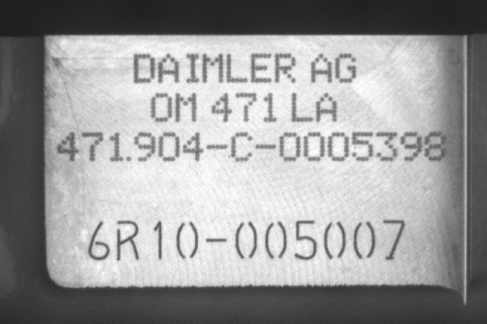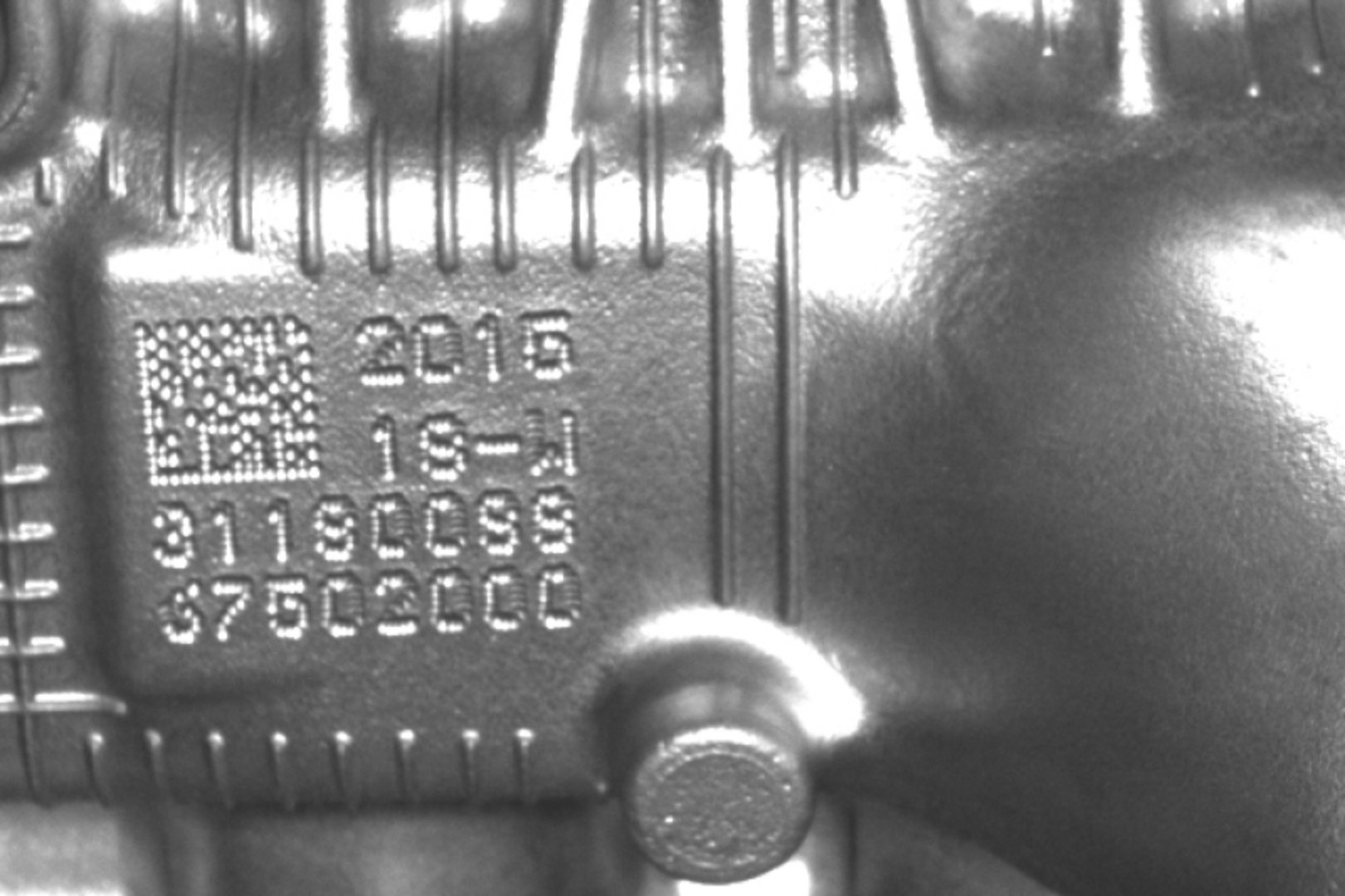 Bildverarbeitungssysteme zum Lesen und Verifizieren von Codes und Zeichen ermöglichen in der Automotive-Industrie ebenso wie in vielen anderen Feldern eine automatische Materialflusssteuerung und die Rückverfolgbarkeit von Produkten. Die verwendeten Codes treten dabei in vielfältigen Formen auf: Häufig kommen 1D- und 2D-Codes wie z. B. der Data Matrix Code zum Einsatz, die in vielen Fällen als DPM-Codes direkt auf den Bauteilen aufgebracht sind. Selbst bei schwierigen Kontrastbedingungen müssen diese Codes oder auch auf Metall eingeschlagene bzw. geprägte Zeichen sicher und schnell erkannt und gelesen werden, um effiziente Abläufe zu garantieren.