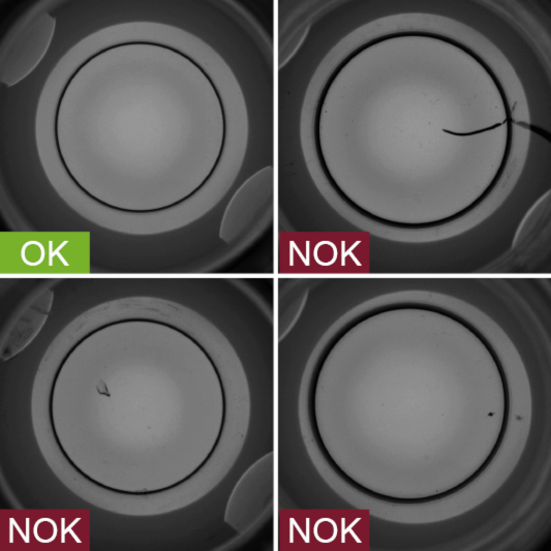 Bördelkappen sind metallische Kappen, die Vial-Stopfen nach der Abfüllung versiegeln und somit sicherstellen, dass sich diese nicht mehr lösen können. vial.inspect inspiziert diese Bördelkappen im Rahmen einer 100%-Prüfung aus bis zu 4 Perspektiven simultan und stellt sicher, dass nur einwandfrei verschlossene Vials im weiteren Prozess verarbeitet und anschließend ausgeliefert werden.