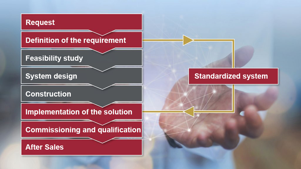 Our project process begins with a detailed analysis of your requirements and a comprehensive feasibility study. This ensures that all aspects of your quality requirements are covered. From system design and construction to final commissioning, we accompany you every step of the way: We ensure that your customized solution is seamlessly and securely integrated into your process.